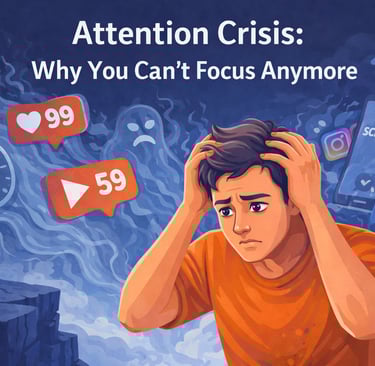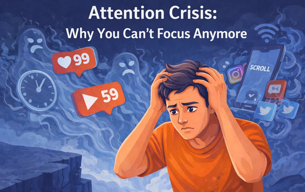 Facing the attention crisis? Discover why you can’t focus, how social media fuels distraction, and simple ways to take back control today and rebuild focus.